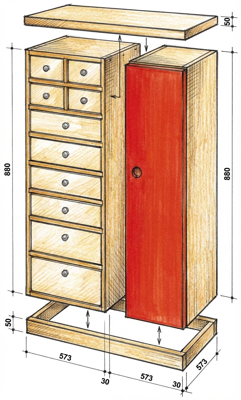 Ein aufgeräumter Eingangsbereich ist die Visitenkarte jeder Wohnung. Diese Anleitung zeigt Ihnen, wie Sie einen modularen Dielenschrank aus Buche-Leimholz selbst tischlern. Das Besondere: Neben klassischen Schubladen verfügt das Modell über eine innovative „Koffertür“, die zusätzlichen Stauraum für Kleinteile bietet. Durch den modularen Aufbau passen Sie das Möbelstück leicht an Ihre Räumlichkeiten an.